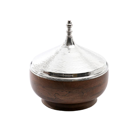 Newest Design Wooden Food Serving Hot Pot With Stainless Steel Lid Restaurant Dining Table Food Casserole Pot