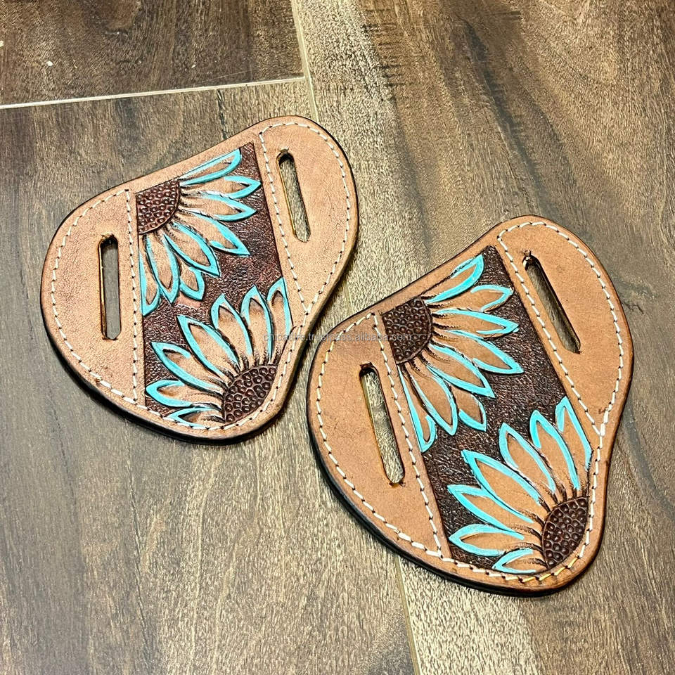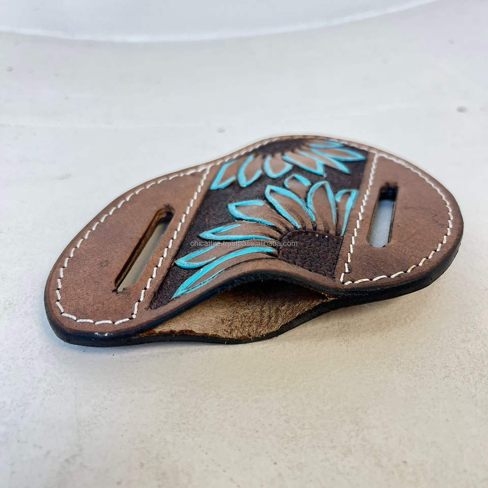 Newest Floral Tooled Leather Folding Knife Sheath Portable Belt Loop Knife Holster Waist Knife Pocket Pouch Holder EDC Organizer