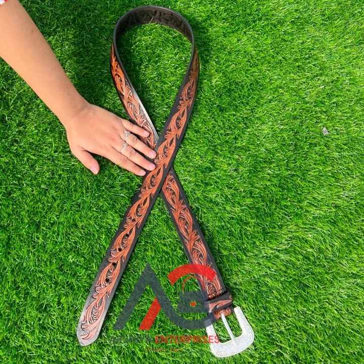 Newest Genuine Leather Western Hand Tooled Leather and Hand Painted Floral Belts Real Handmade Tooled Leather Unisex Waist Belts