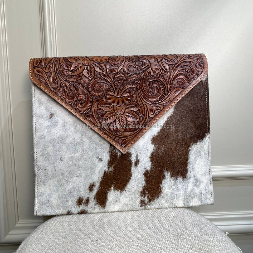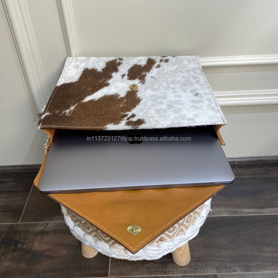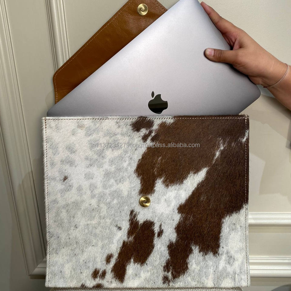 Newest Hair on Tooled Leather Personalized Laptop Sleeve Genuine Cowhide Leather Envelope Sleeve for 13, 14, 16 Inch Laptop Case