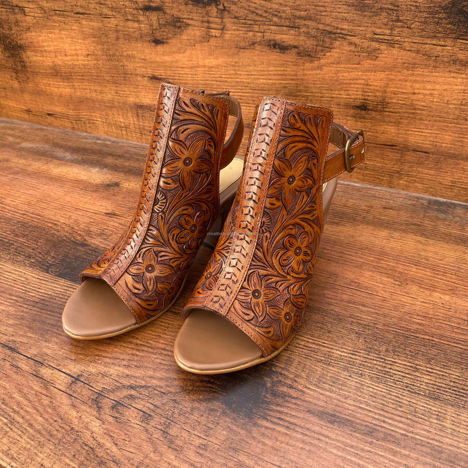 Hand Tooled Lady Sandal Ladies Woman Shoe