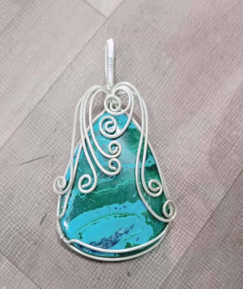 Newest Malachite Pear Shape Stone Wire Wrapped Pendant Wholesale Price 925 Sterling Silver Plated Pendant Jewelry