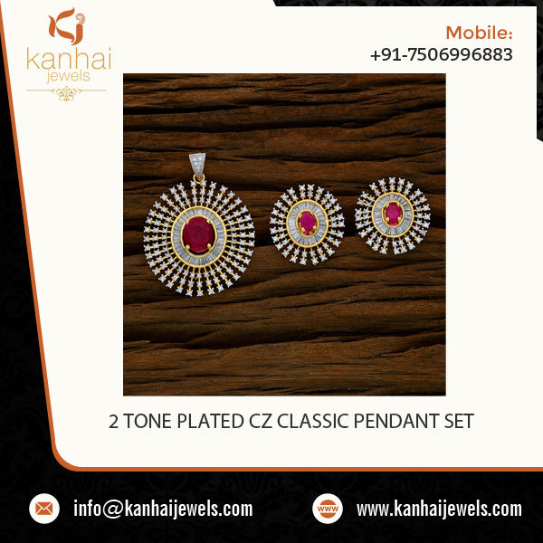Newest Market Arrival Trendy Classic Style Cubic Zirconia Pendant Set 52593 Wholesalers in India