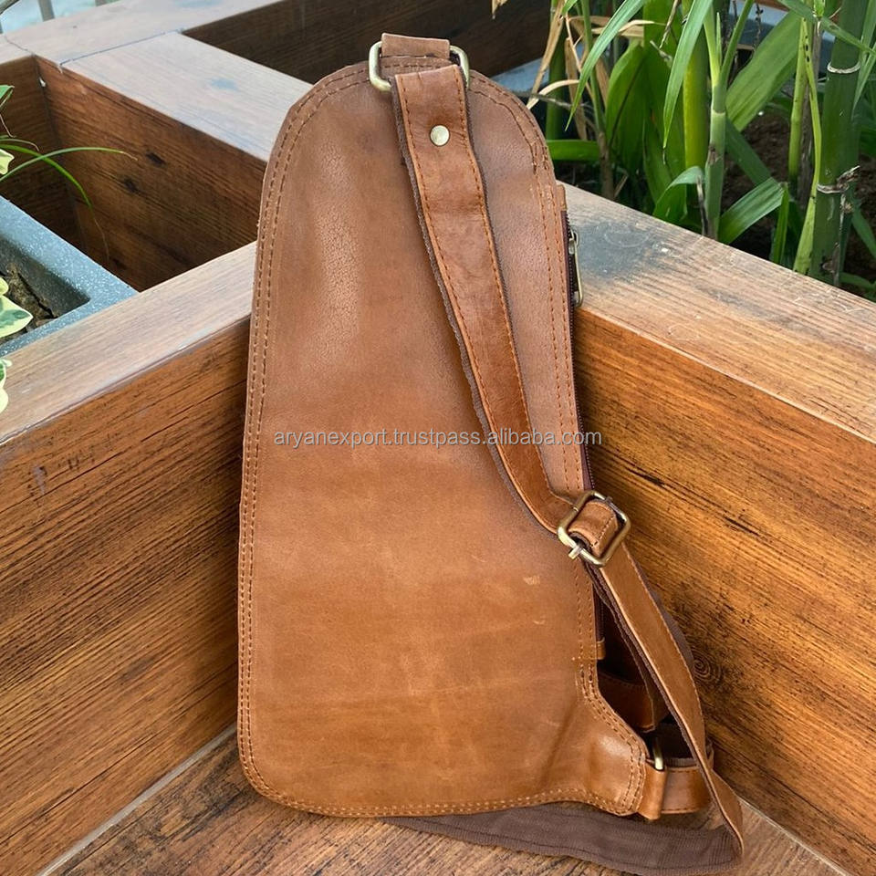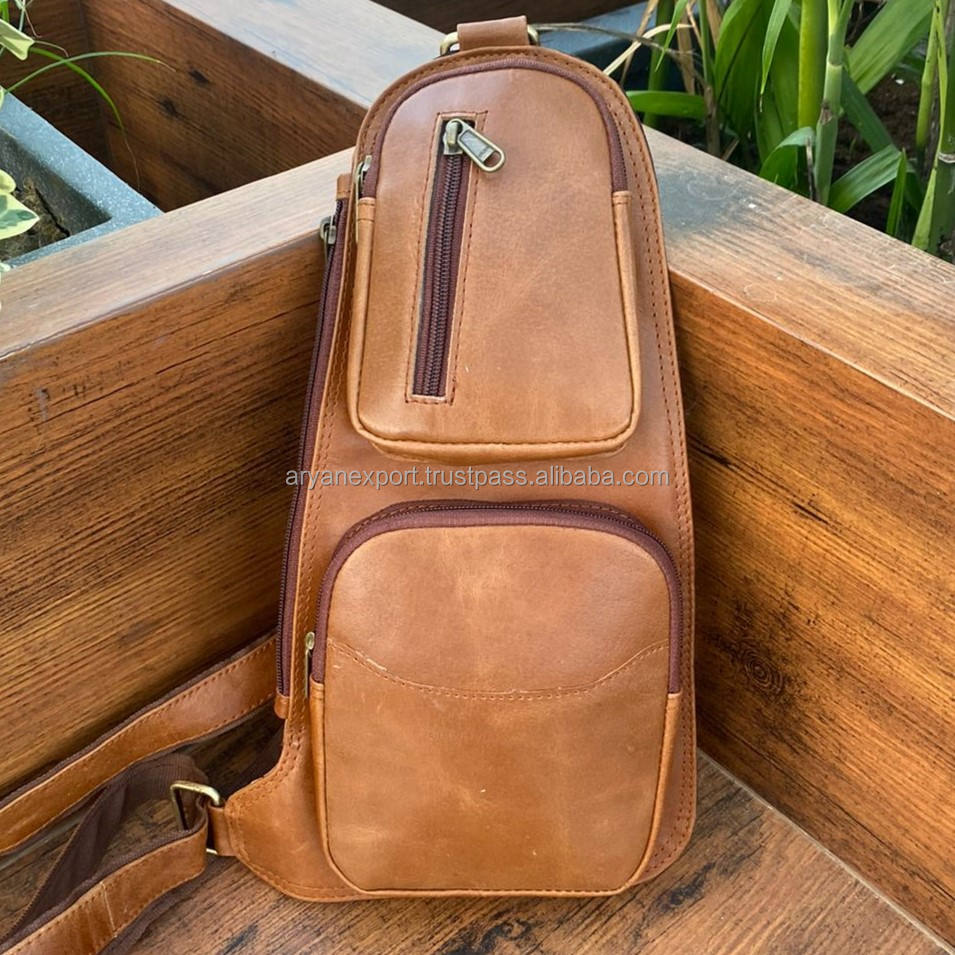 Newest Men's Business Full Grain Genuine Leather Chest Bag Vintage Cowhide Leather Cycling Sports Crossbody Bag Casual Sling Bag