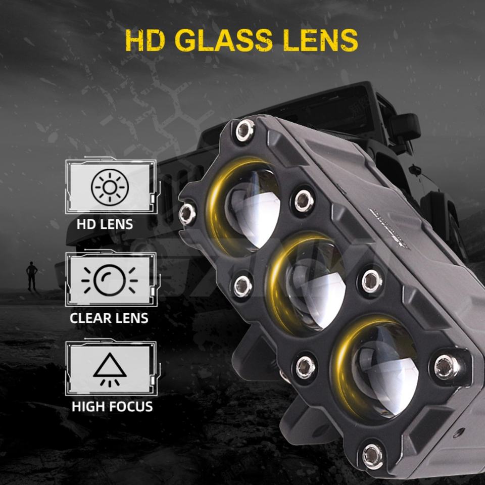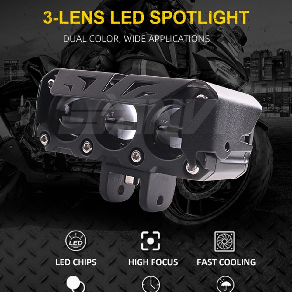 Newest Motorcycle S03 LED Projector Lens Dual Color with 3 Pieces Fish Eye 40w 6000k Auto Work Light Fog Warn Turn LED Lamp