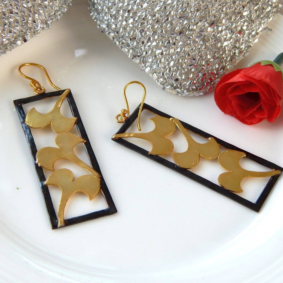 Handmade Gold-Plated Rectangle Design Dangle Earrings for Women Cute Brass Fashion Jewelry Stylish for Party Occasions