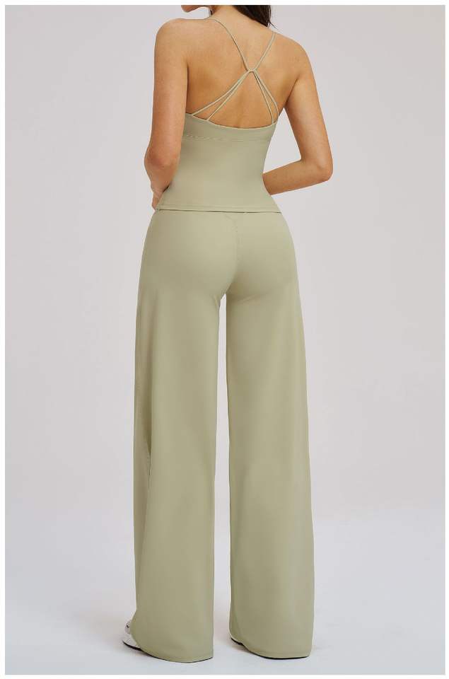 Sexy Deep V Neck Top & Cross Waist Wide Leg Pants 6-Piece Set Breathable Athletic Yoga Workout Fitness Wear