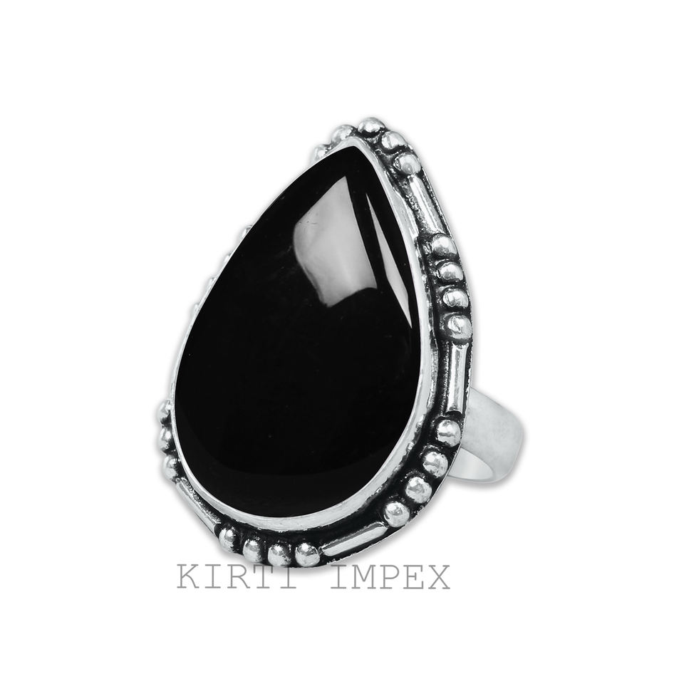 Newest Simple Solitaire Rings Made With Solid 925 Sterling Silver Natural Pear Shape Black Onyx Cabochon Gemstone Rings Jewelry
