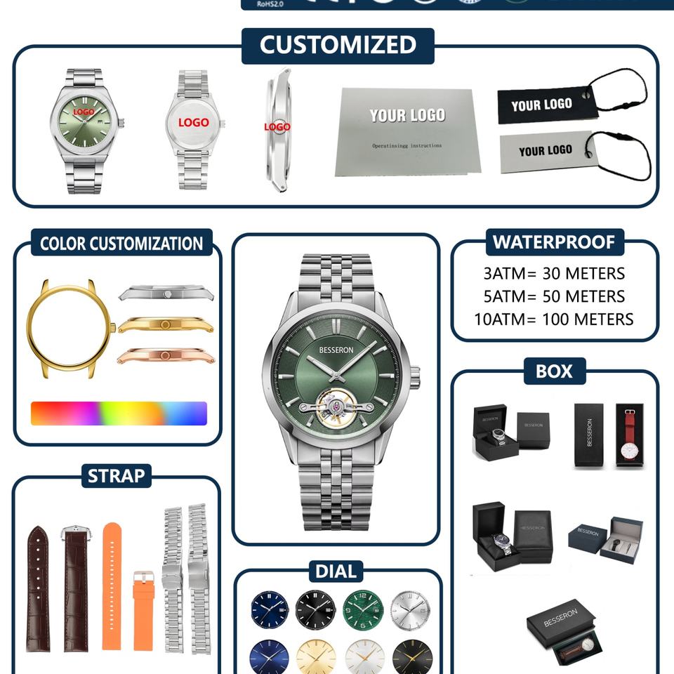 Newest Style Mechanical Analog 41mm Watch Japan Movement All Stainless Steel Open Heart Dial Luxury Automatic Custom Brand