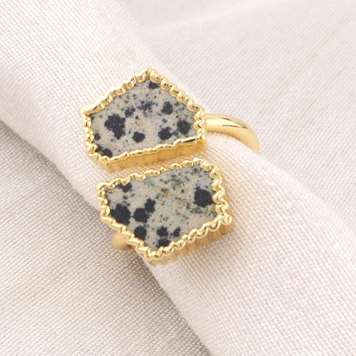 Newest Style Natural Dalmation Stone Ring Electroplating Ring Jewelry Wholesale Supplier Light Weight Adjustable Ring