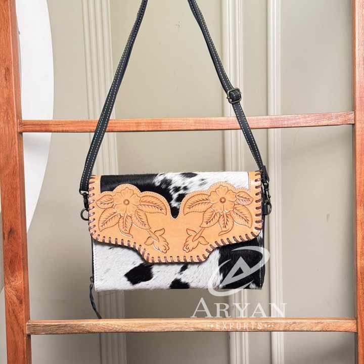 Hand Tooled Leather Carryall Floral Crossbody Bag