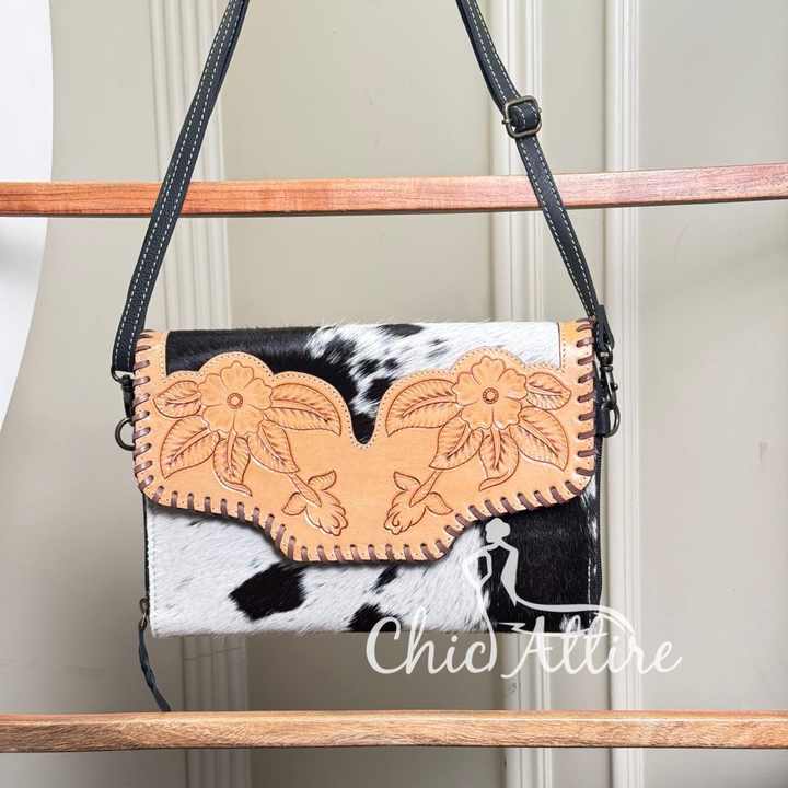 Hand Tooled Leather Carryall Floral Crossbody Bag