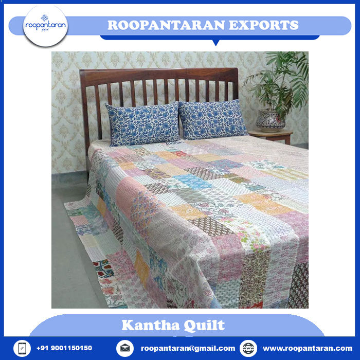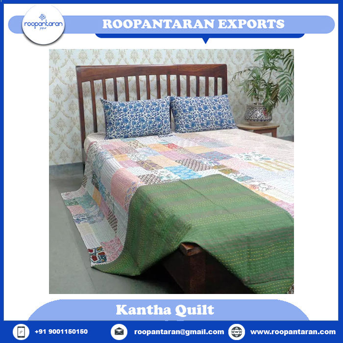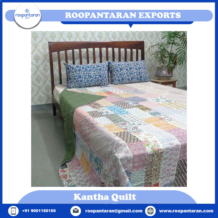 Newest Trending Direct Manufacturer's Twin Size Kantha Quilt Indian Hand Block Printed Organic Cotton Coverlet for Adults