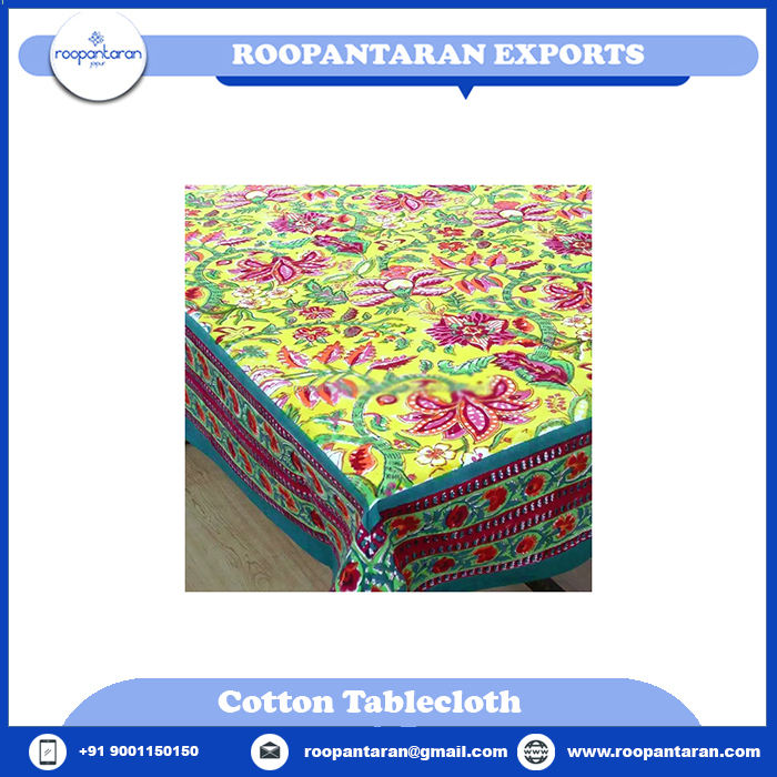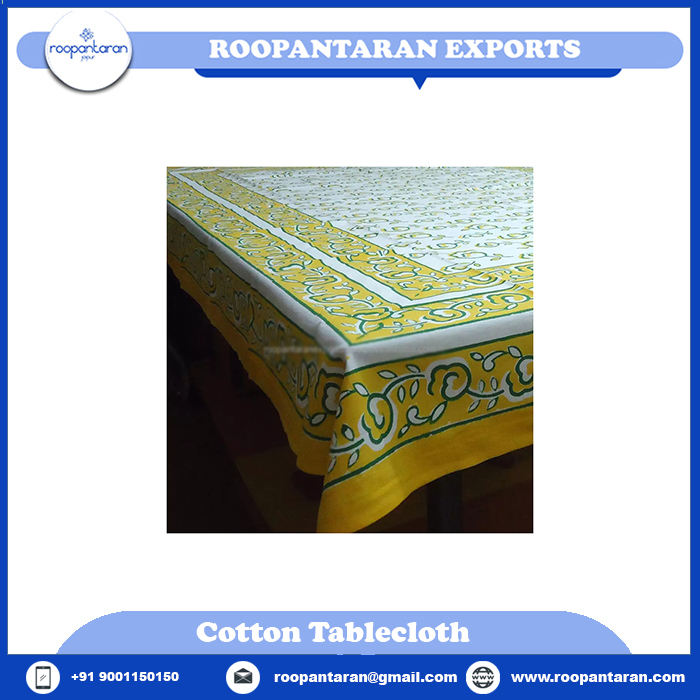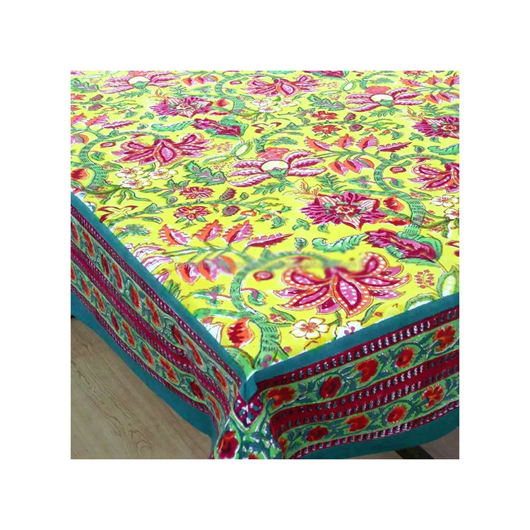 Newest Trending Handmade 100% Indian Cotton Tablecloth Yellow Design Hand Block Printed Factory Outlet Sale at Low Price
