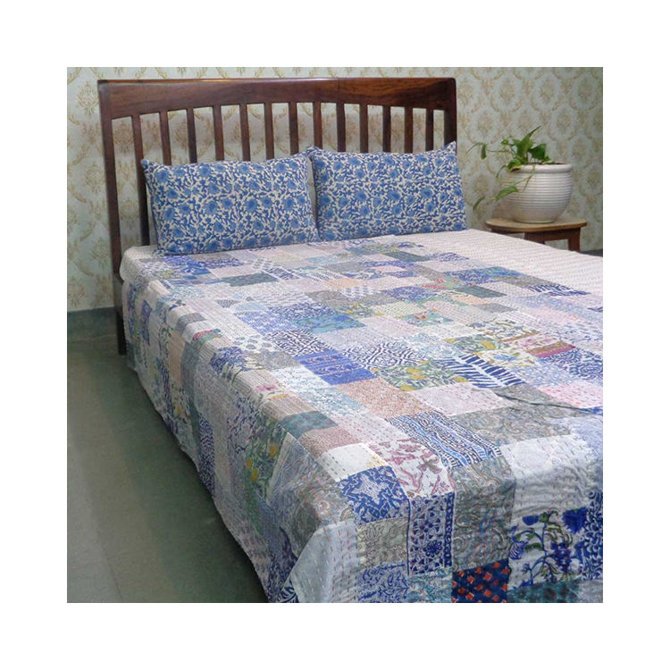 Newest Trending Kantha Quilt Vintage Indian Hand Block Printed Cotton Patchwork Twin Size Kantha Quilt for Sale at Cheap Price
