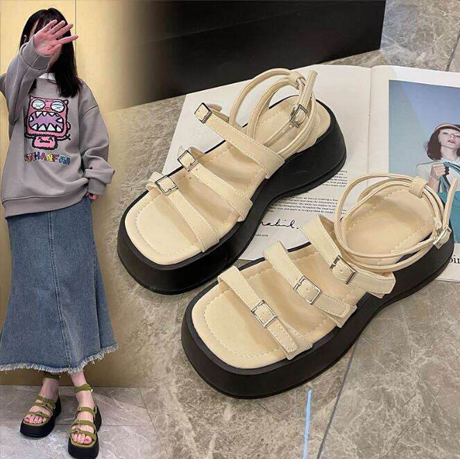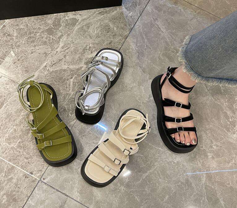 Newest Women Flat Low Wedge Heels Knot Woven Platform Anti-Slippery Spring Summer Casual Cross Strap Sandals