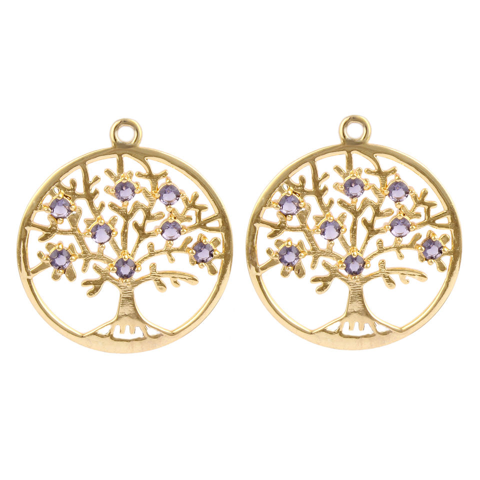 Newest collection amethyst quartz connector tree of life round connector gold plated prong setting charms for jewelry making