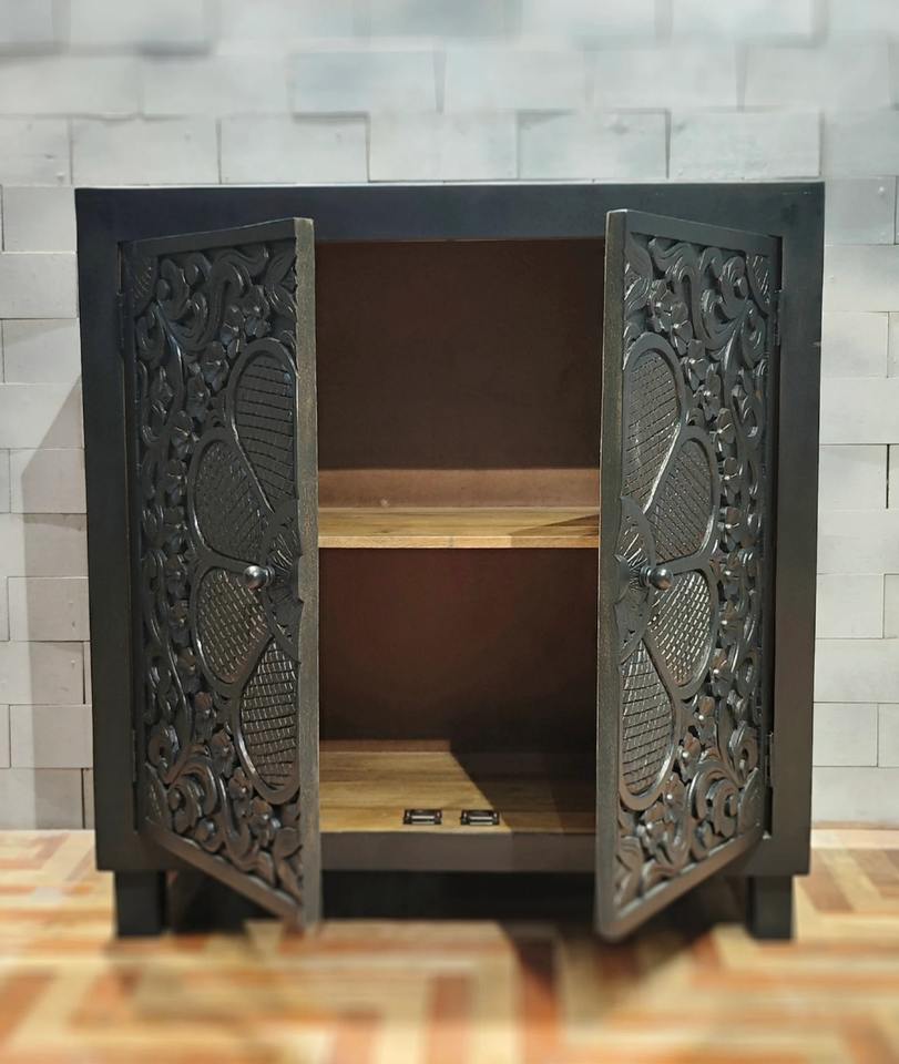 Newest luxury Hot Sale Elegant Rustic Home Furniture Black Flower Carved Door Solid Wooden Storage Cabinet for Living Room