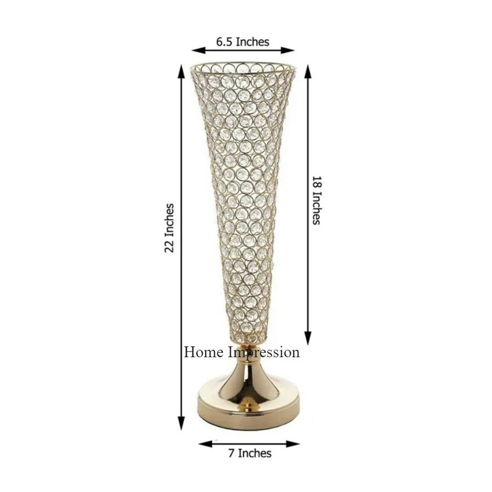 Newly Arrival Attractive Look Prime Quality Crystal Unique Beaded Designer With Gold Color Plated Metal Base Trumpet Vase Supply