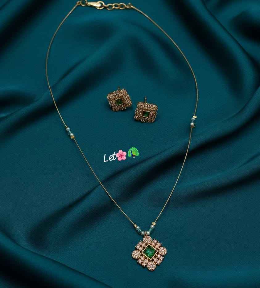 Newly Arrival Classic Square Green Crystal Pendant Necklace & Earring Set For Sale By Exporters