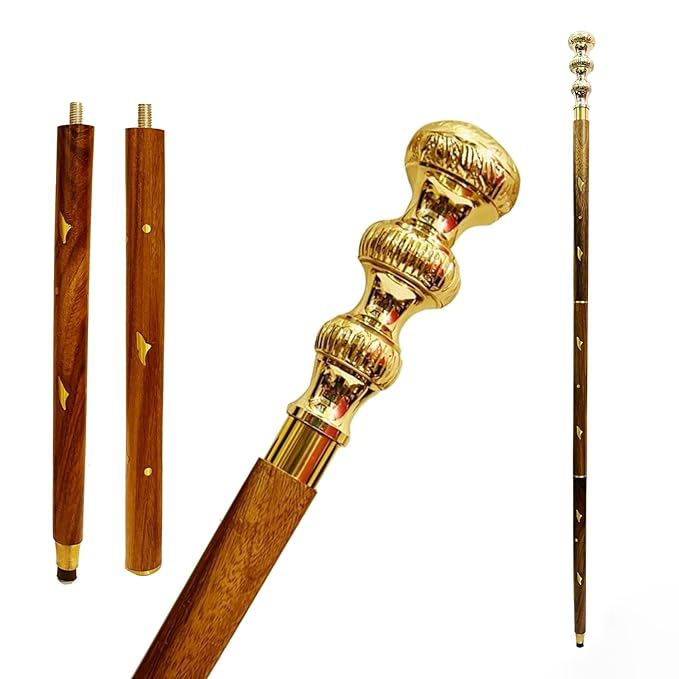 Newly Arrival Wooden Walking Sticks with Round Shaped Handle Golden Finished Polished Wooden Made Walking Sticks