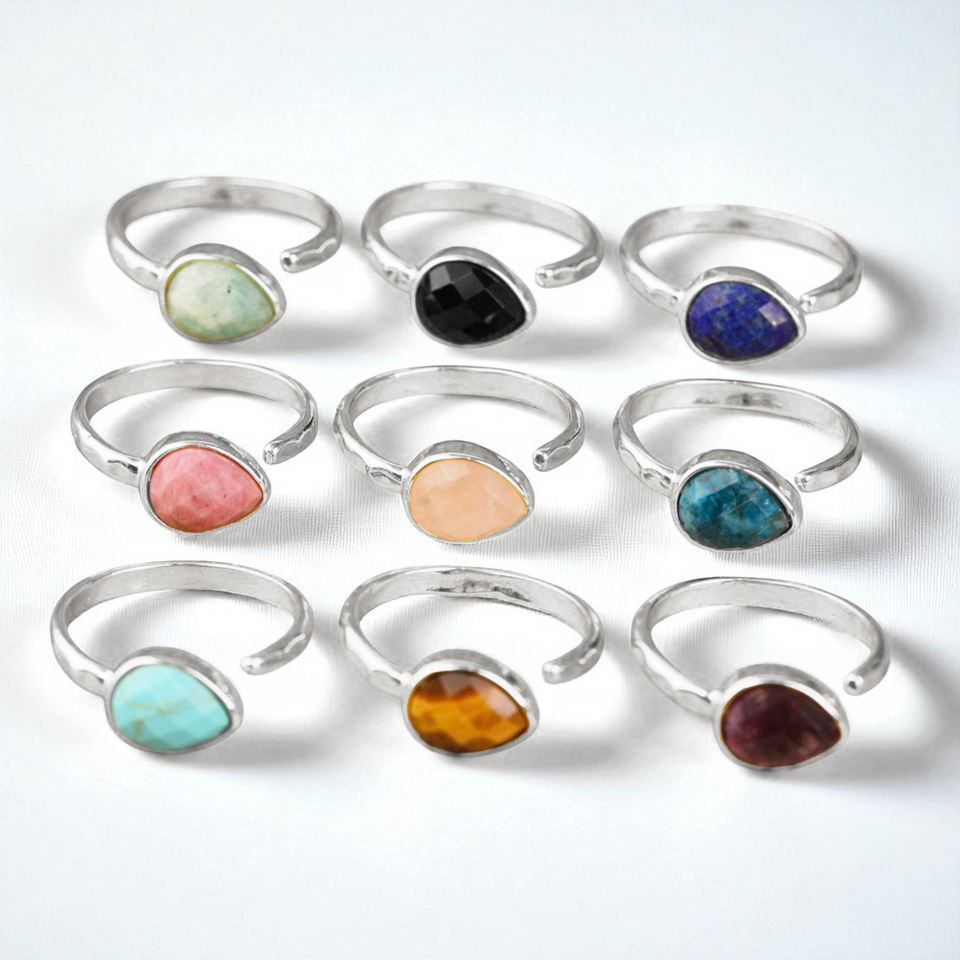 Newly Arrived 925 Sterling Silver Pear Faceted Lapis Lazuli Gemstone Eternity Vermeil Hammered Band Ring Jewelry Bulk Wholesale
