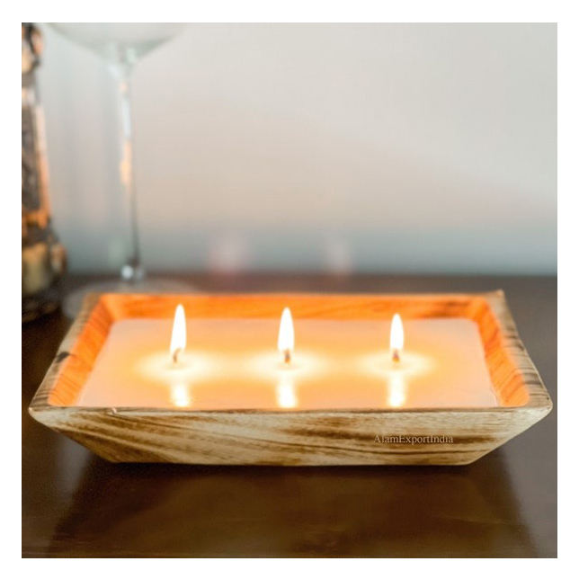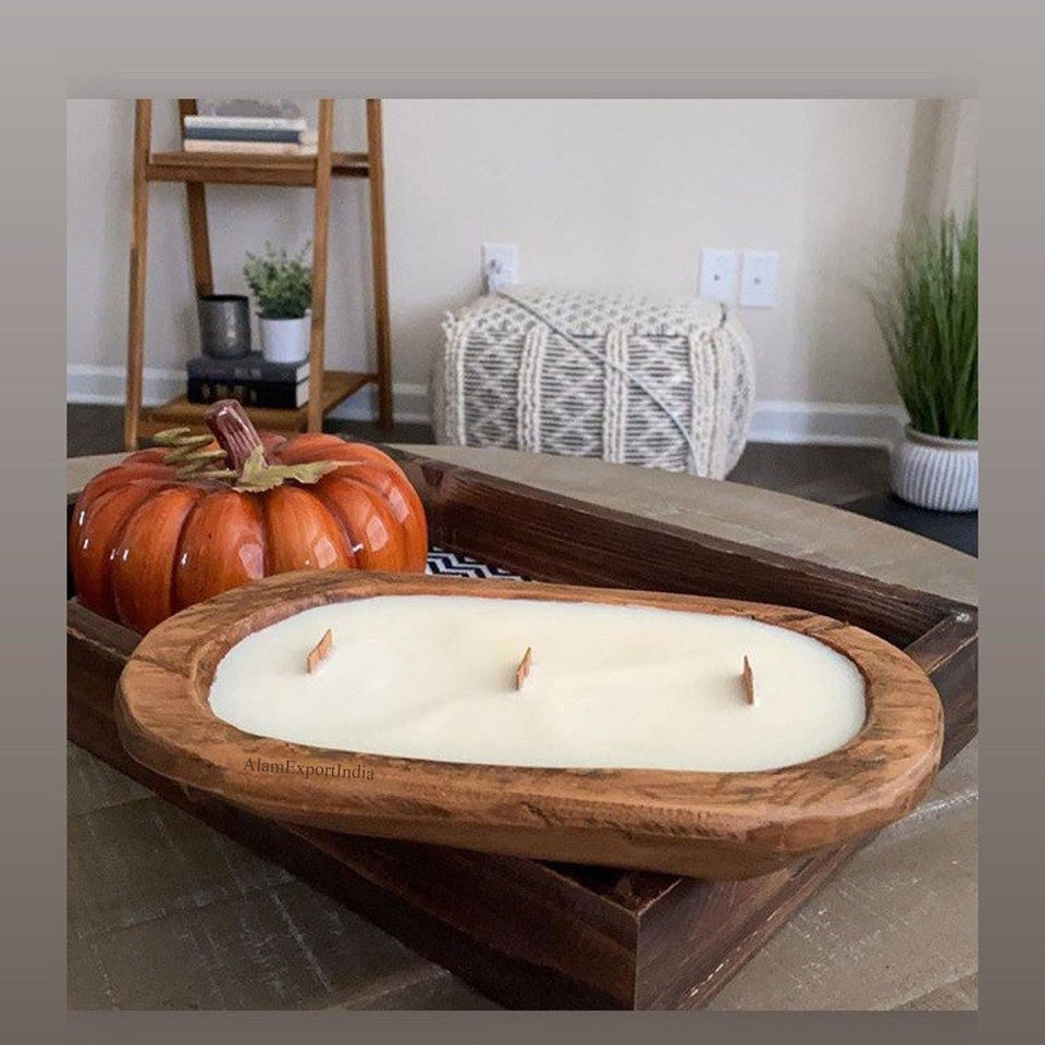 Newly Attractive Design Vintage Mango Wooden Long Candle Dough Bowl Hand Carved Soy Candle Bowl Natural Wood for Decoration Home