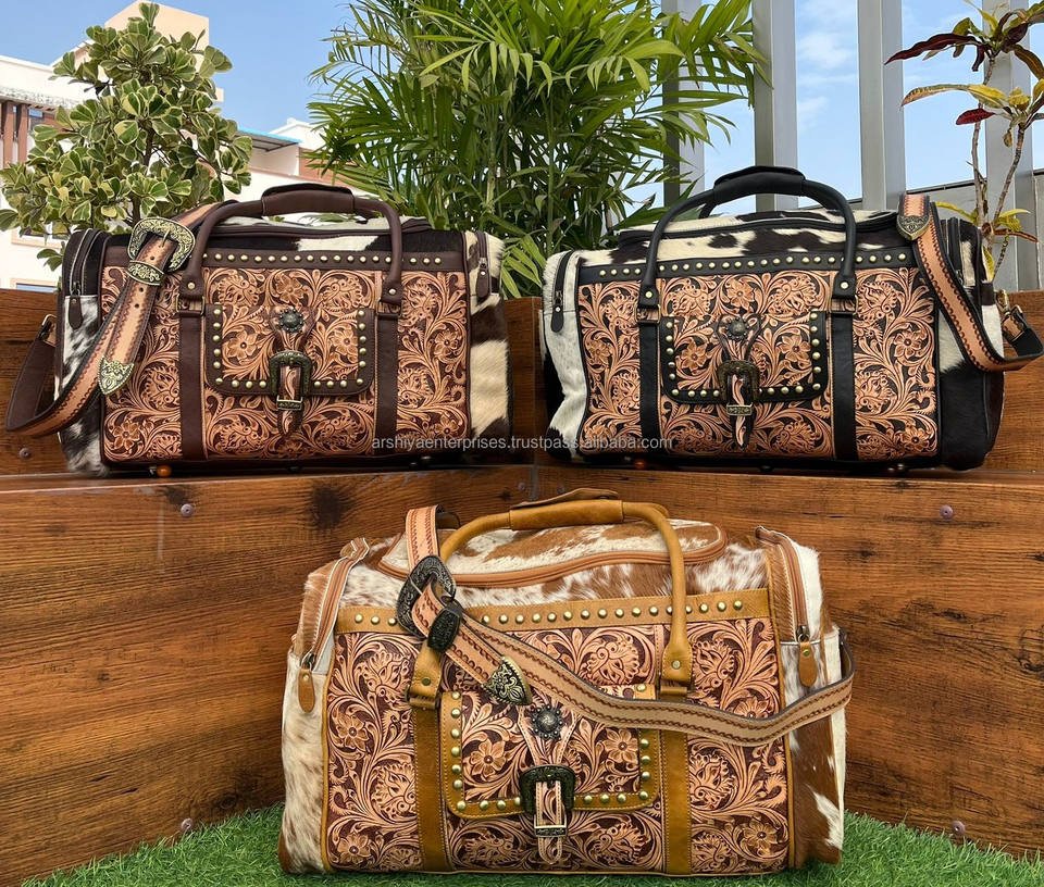 Newly Customized Unisex Hand Tooled Leather Duffel Bag Cowhide Leather Weekender Bag Handmade Large Travel Vacation Holidays Bag