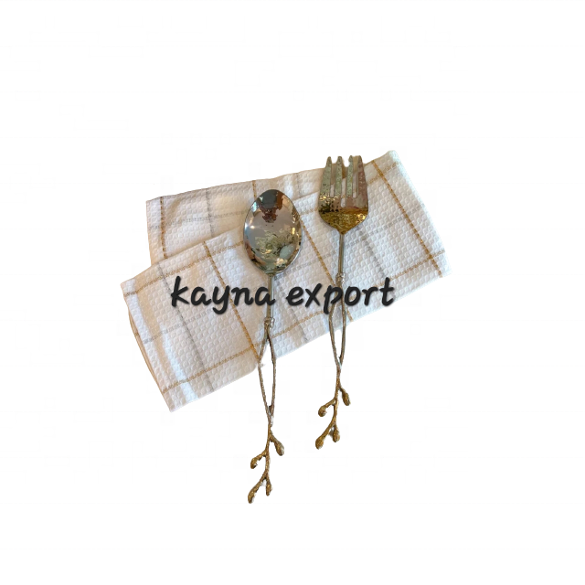 Newly Design Gold Metal Serving Spoon Set of 2 Customized Packing Black Gift Box Restaurant and Hotel Serving Spoon