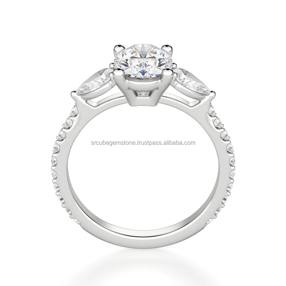 Newly Designed Bypass Bridal Engagement Ring for Women Gold Plated Oval & Pear Cut Moissanite Diamond for Wedding or Gift