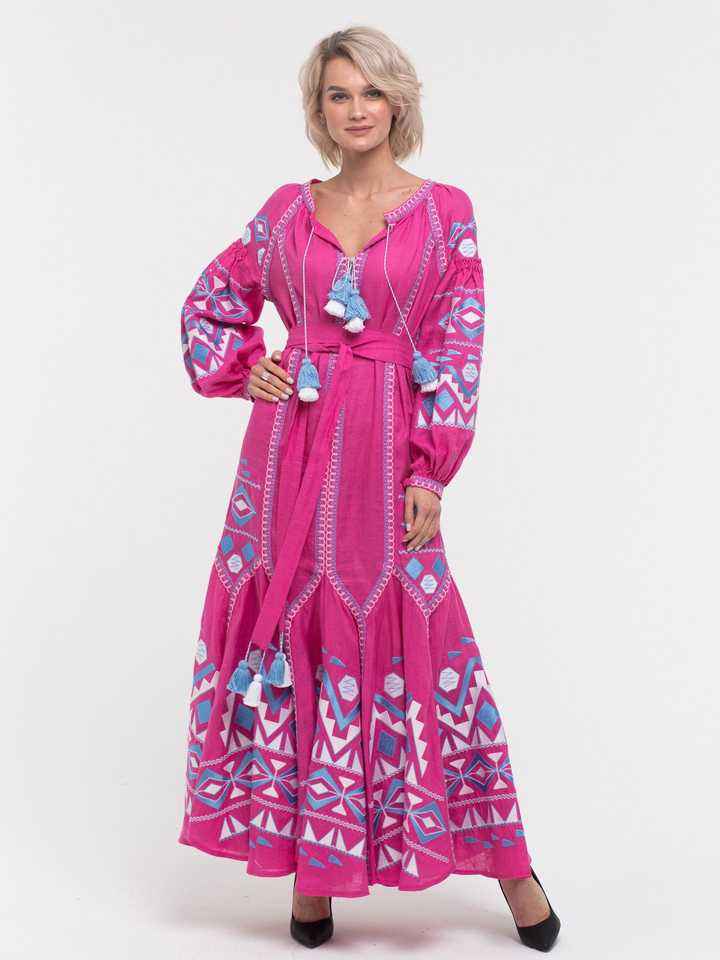 Newly Designed Embroidered Ukrainian Dress Ukrainian Vyshyvanka Modern Ukrainian Long Sleeve Long Dress At Best Price For Women