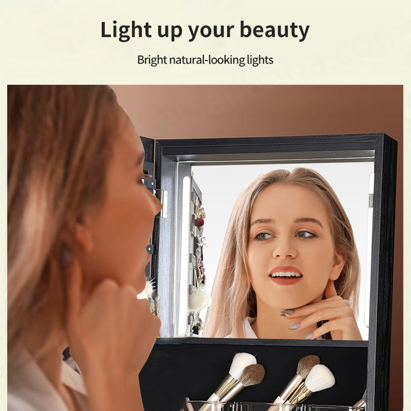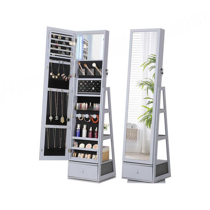 Newly Designed LED Light Makeup Mirror Frame 360 Degree Rotating Mirror With Storage Jewellery