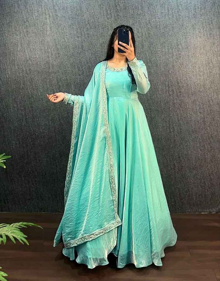Work:Embroidery Sequence Work Neck And Smooth Shining Like Jwala.