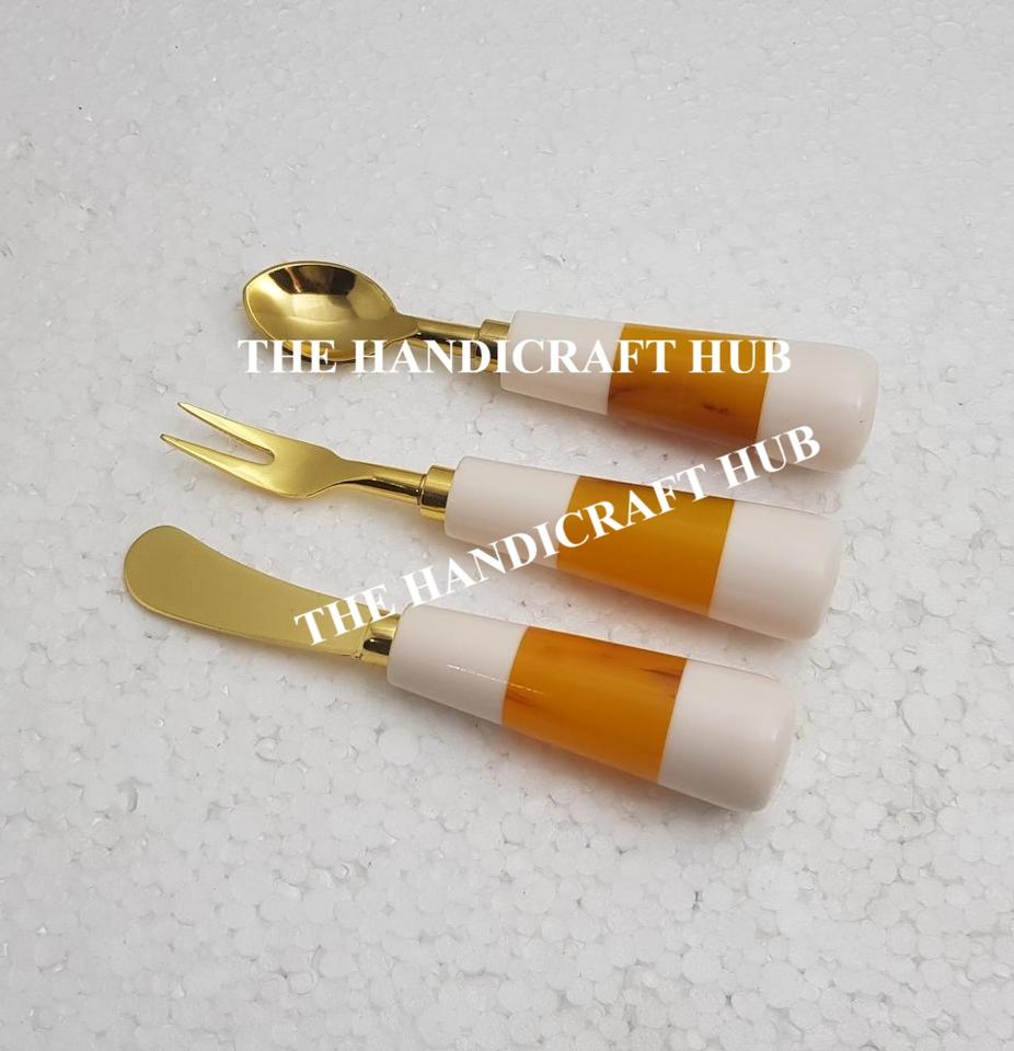 Newly Made Design Cheese Set Kitchen Utensil Cutlery Set Stainless Steel Cheese Set Wood Resin Handle At Factory Wholesale Price