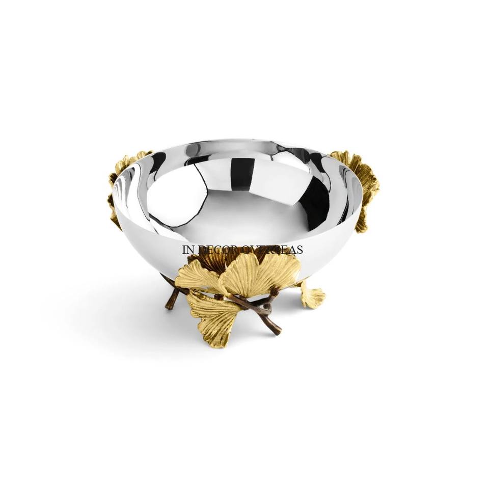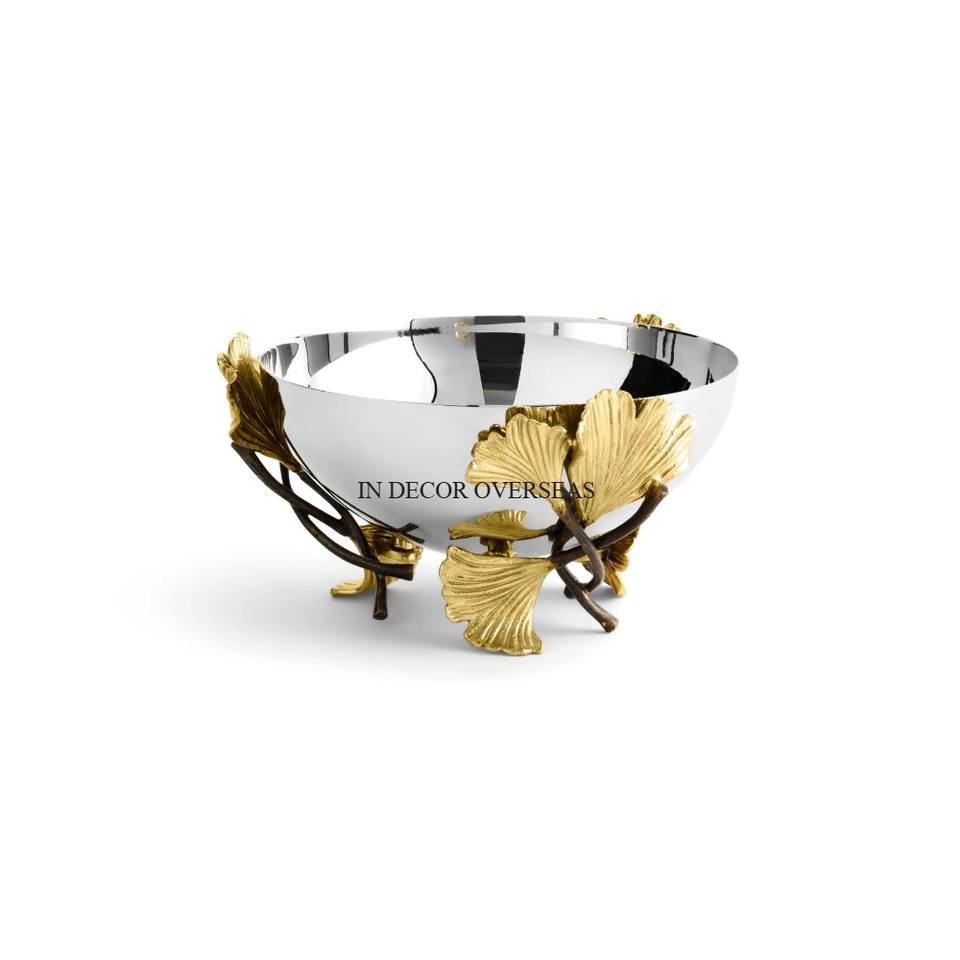 Newly Pattern Arrival Premium Quality Metal Made Round Shape Silver Unique Texture Finished Bowl With Gold Plated Flowers Base