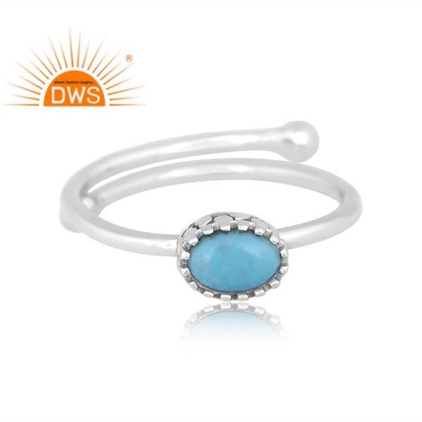 Newly design fine sterling silver natural Arizona Turquoise gemstone adjustable ring jewelry manufacturer