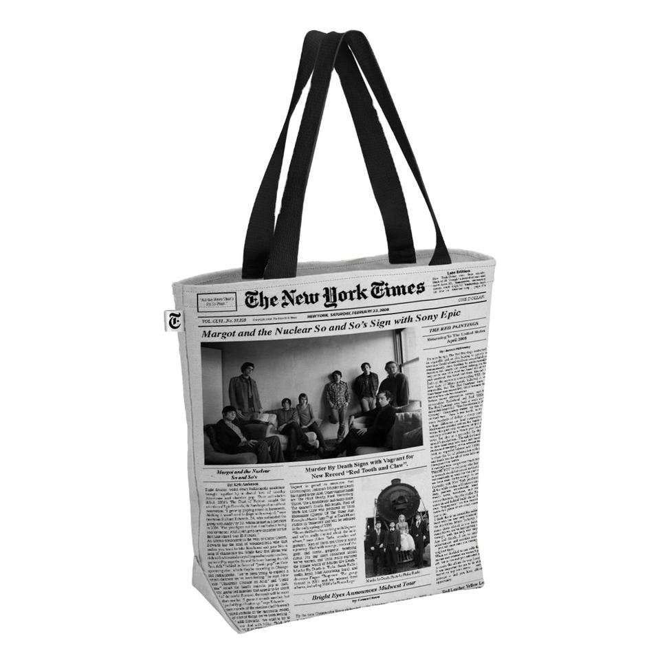 Newspaper Printed Black Handle Canvas Bag