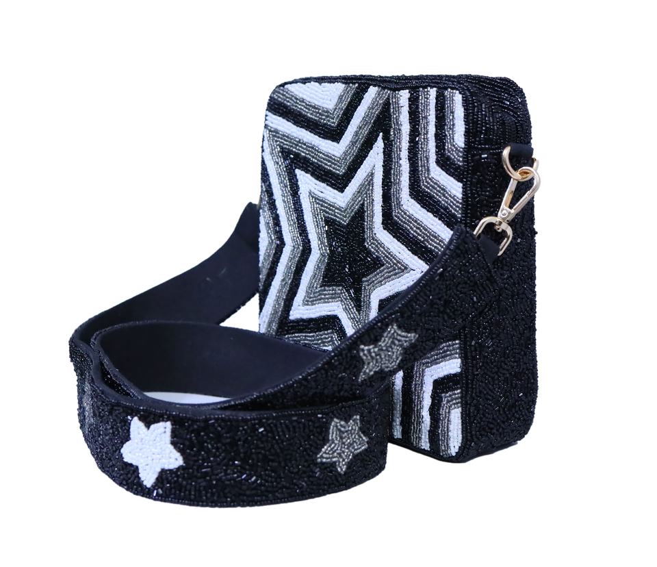 Newst Stylish White and Black Star Design Cross Body Bag Women and Girls Handmade Beaded Crossbody Purses With Straps Make