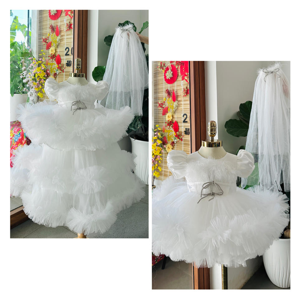 Nhung Nguyen High Quality Satin Princess Dress Detachable Long Train Customizable OEM ODM Made Vietnam for Baby Girls' Parties