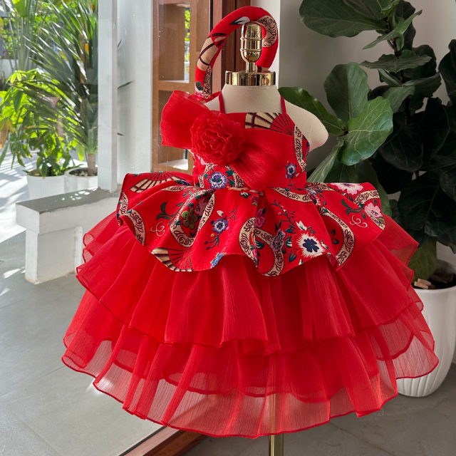 Nhung Nguyen Princess Dress Short Brocade Pinafore Baby Girls High Quality OEM ODM Kid Clothes Vietnam Made Denim Satin Small