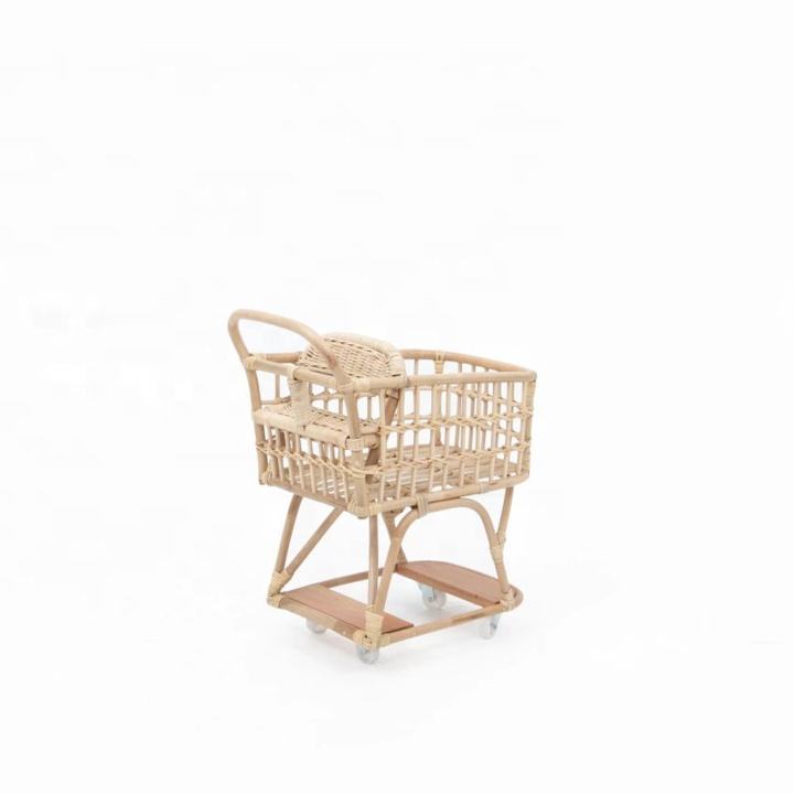 Nice Looking Baby Toys Rattan Kids Shopping Trolley Fashion Mini Supermarket Hand Trolleys / Kid Toy Supermarket Mini Shopping