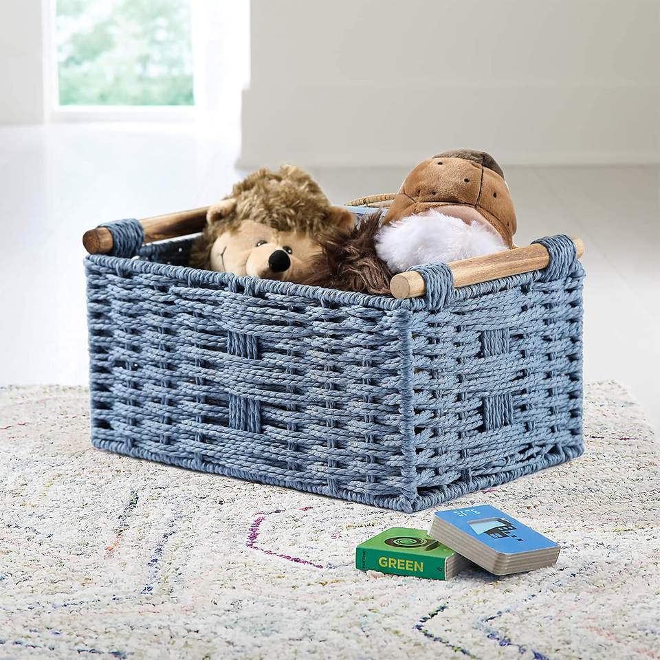 Nice Price New Paper Rope Baskets with Wooden Handles Bathroom Storage Bins Handwoven Wholesale From Vietnam