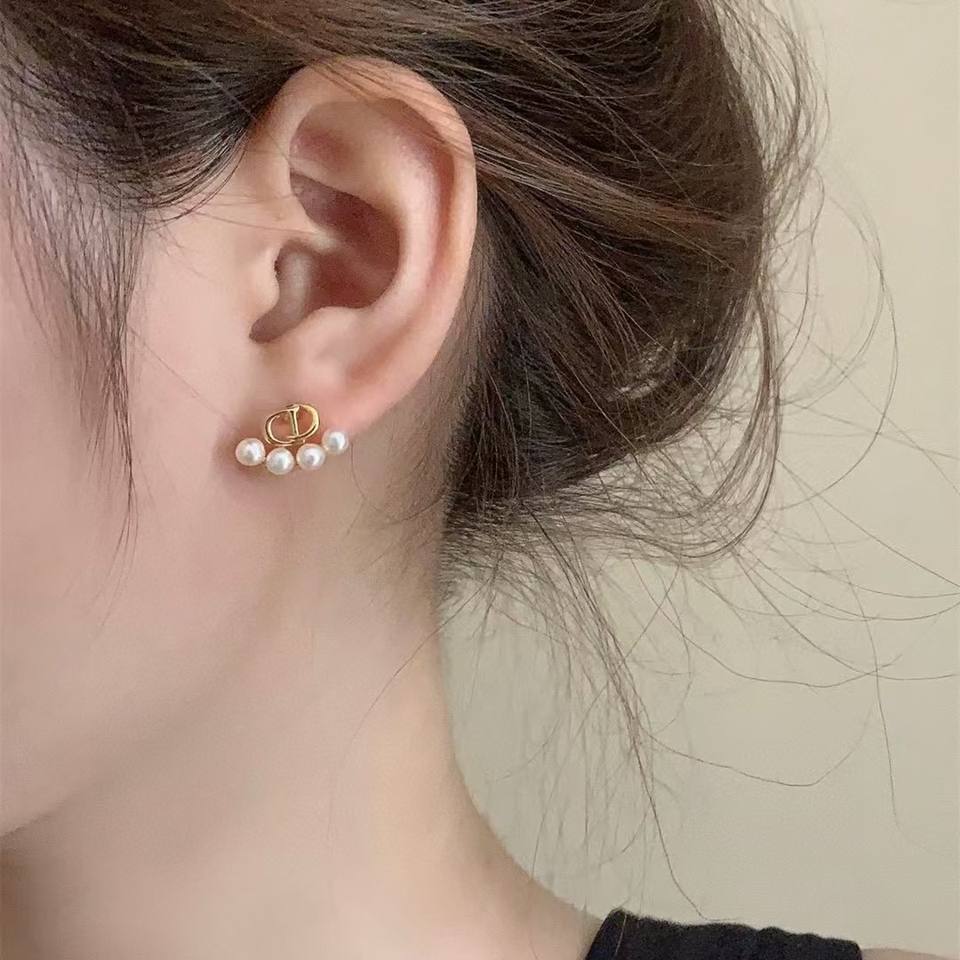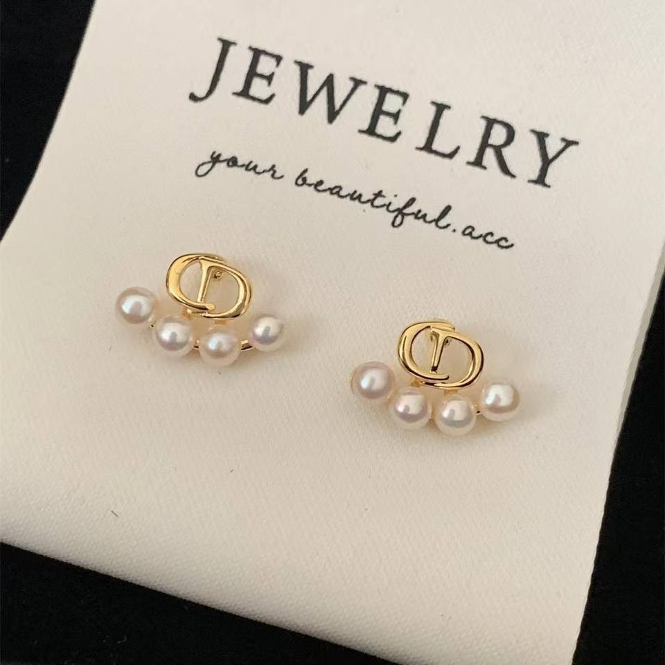 Niche Design European American Retro Stud Earrings Classic CD Letter Pearl Freshwater Pearl Earrings Zhuji Natural Freshwater