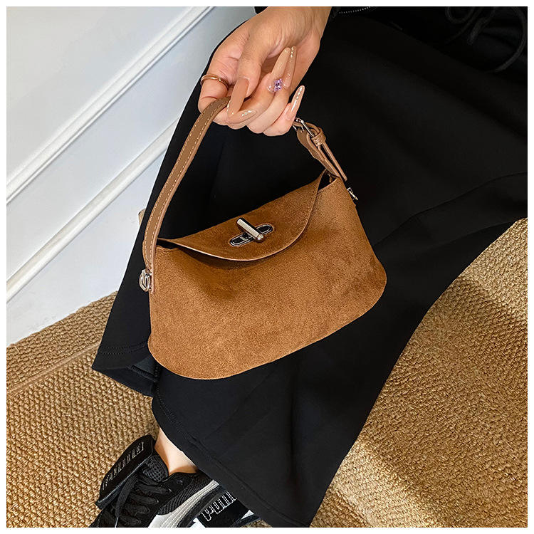 Niche Design Small Vintage Portable PU Dumpling Bag Women's New Frosted Light Luxury Contrast Shoulder Crossbody Bag