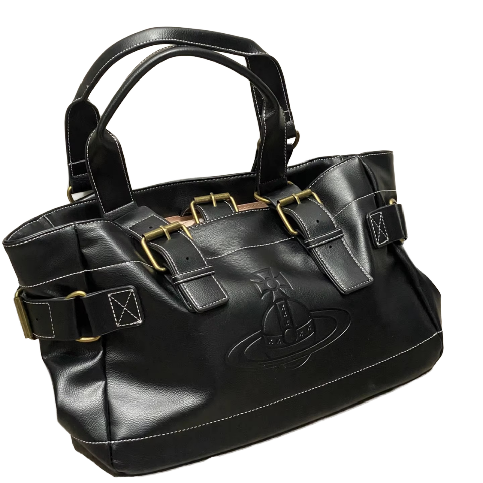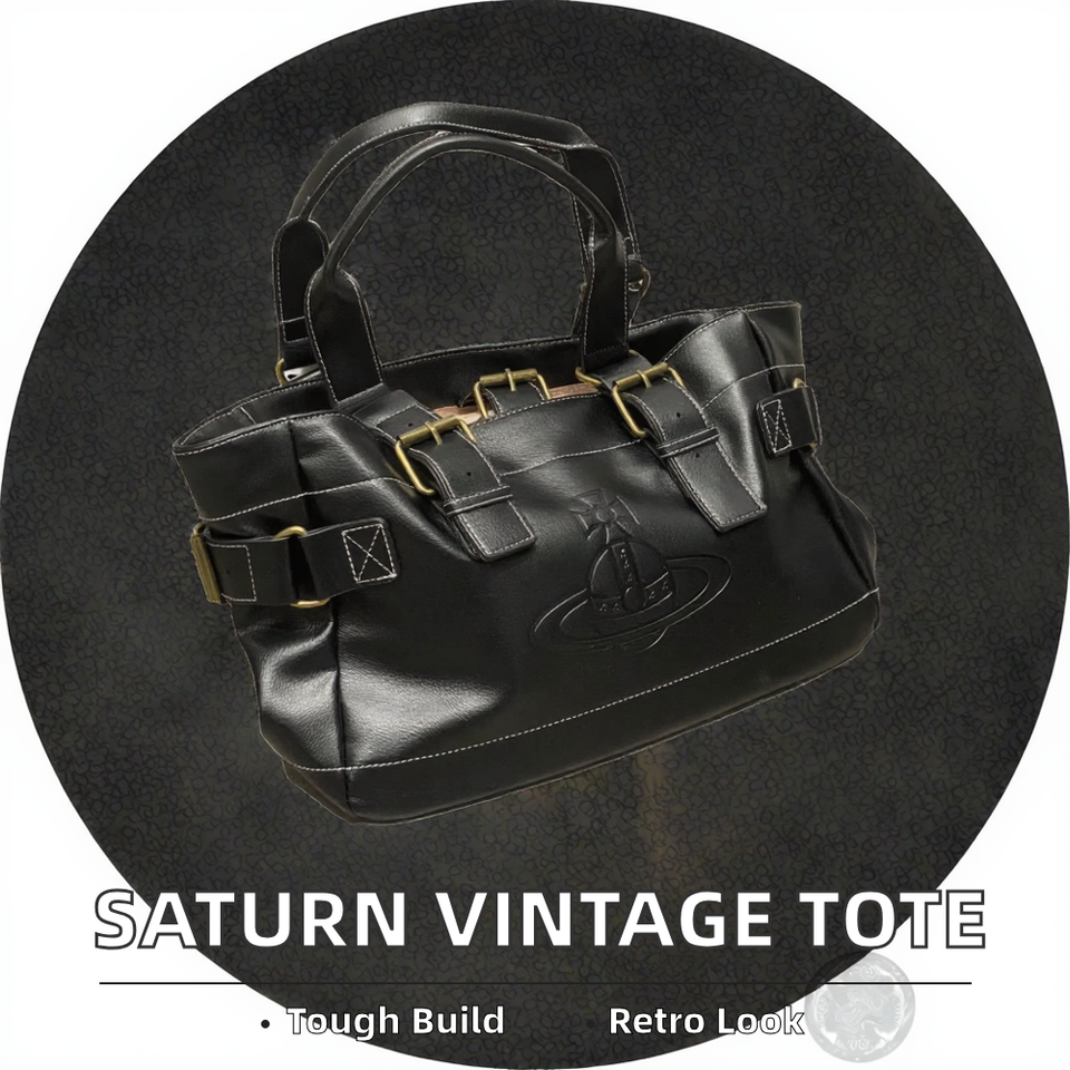 Niche Empress Dowager Saturn Vintage Genuine Leather Motorcycle Tote Bag Single Strap Crossbody Geometric Embroidery Polyester