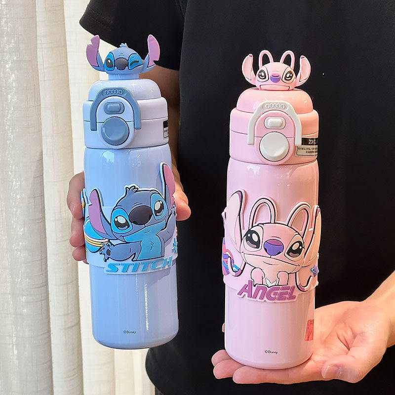 Nick & Judy Dual Drink Insulated Water Bottle 500ml Portable Stainless Steel Cartoon Straw Cup For Kids Student Use