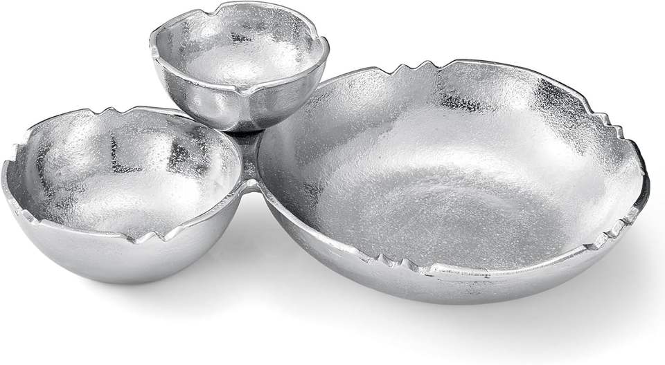 Nickel Aluminium Chip and Dip Serving Bowl Hot Sale Metal Antique Gold Serving Fruits Bowl Unique Table Top Flower Bowl Vase