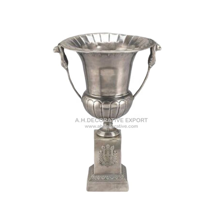 Nickel Plated Aluminum Luxury Urn Vase with Modern Design Square Base Table Top Decoration for Living Room Metal Flower Urn Vase