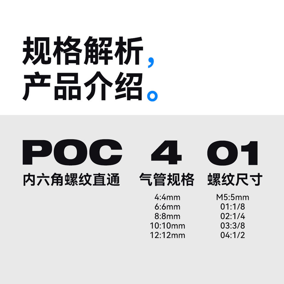Nickel-Plated Copper Quick-Connect Air Hose Connector Pneumatic Parts POC8-02 10-03 Internal Hexagonal Cylindrical Straight