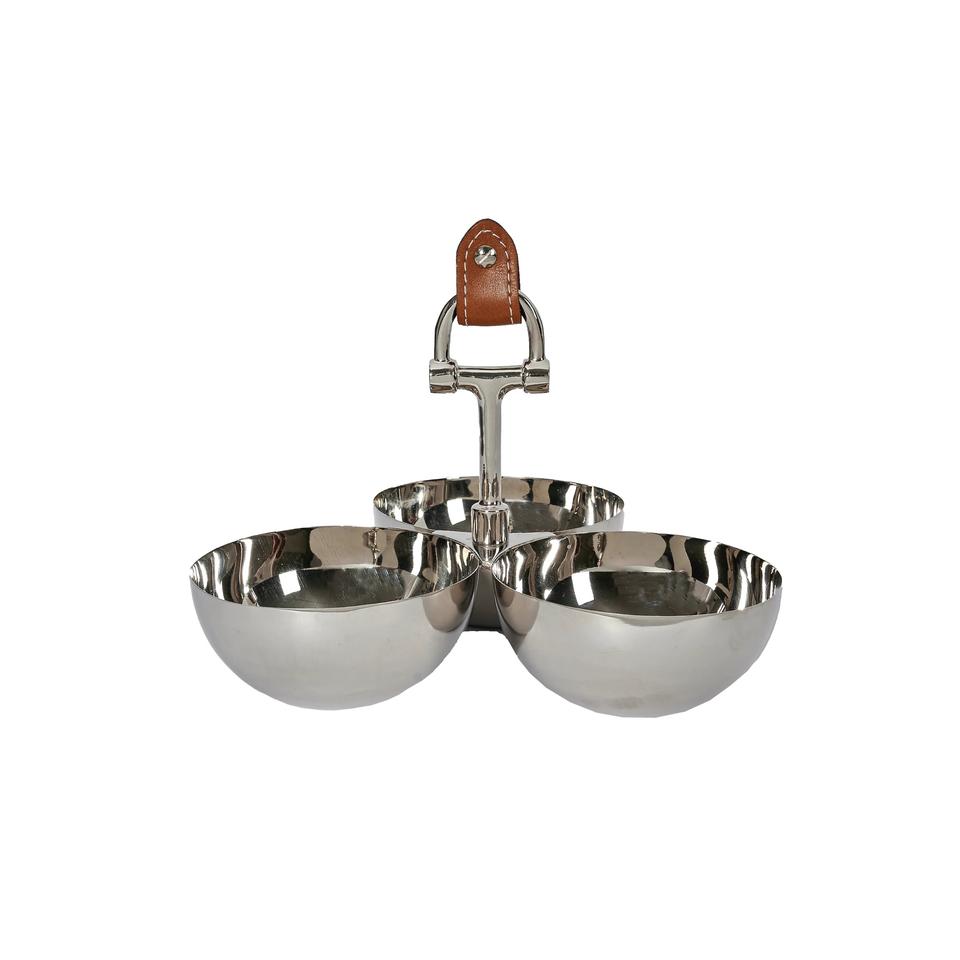 Nickel Plating Metal Serving Bowl with 3 Compartment Hotels Kitchen Tabletop Dry Fruits Nuts and Candy Serving Bowl with Handle